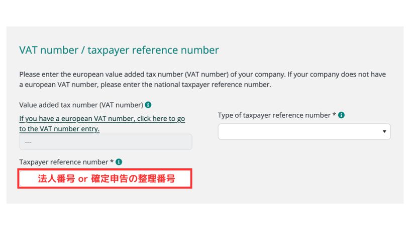 - 「VAT番号」または「確定申告書の整理番号」(運転免許証でも仮登録可能です)