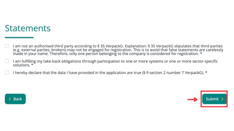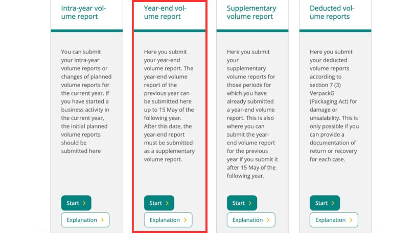 今回提出したデータはあくまで年間の予測データなので、ドイツに送った梱包材の年間重量が確定したら、こちらから確定した数量データを報告しましょう。
