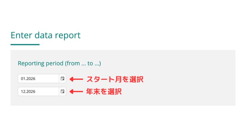 「年間取引量レポート今年度の年度内数量報告または計画数量変更報告を提出できます。今年度中に事業活動を開始した場合は、最初の計画数量報告をこちらに提出してください」
