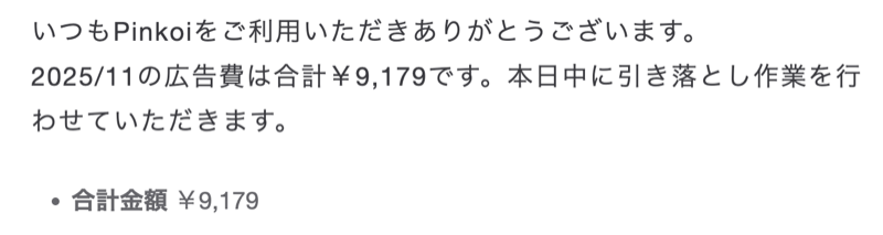 というのも、今までは広告費が割引されてたんですが、11月から通常料金に戻ってたんですよね。
