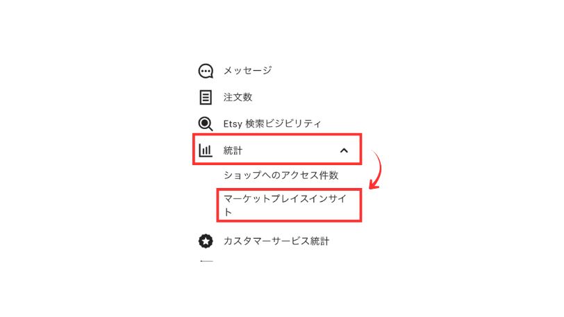 まずはEtsyのマーケットプレイスインサイトを使い、実際の検索数を確認する必要があります。