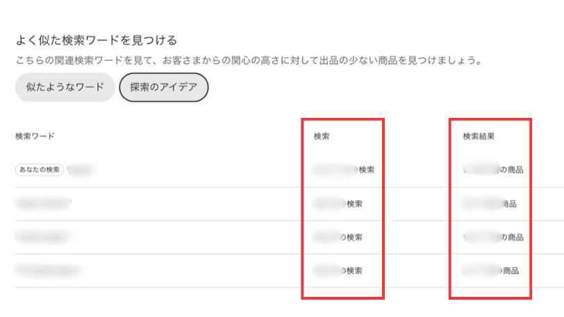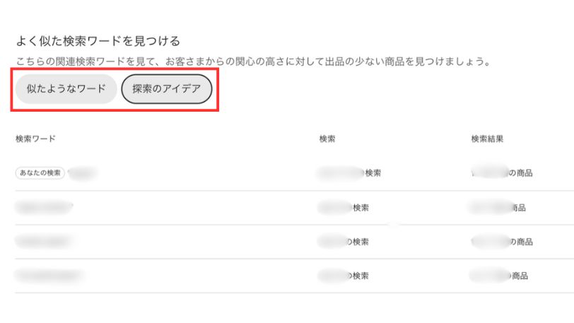 左上の「似たようなワード」と「探索のアイデア」で切り替える