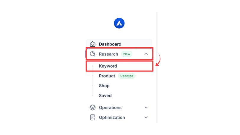 左サイドメニューの「Research」>「Keyword」をクリックします