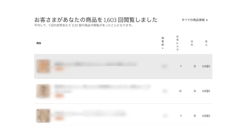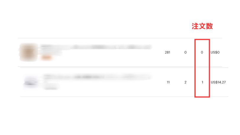 商品別のデータが見えるところまで、下へスクロールします。