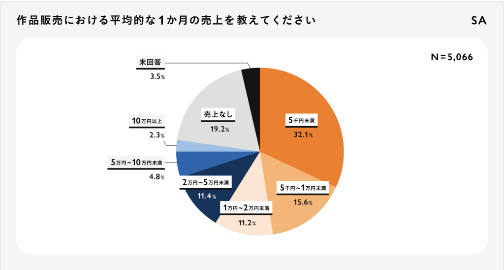 このデータからみると、月5万以上売上のあるハンドメイド作家さんは約7%。